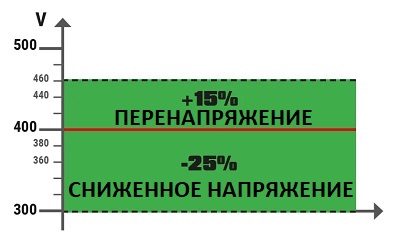ОН ТАКЖЕ ОБЕСПЕЧИВАЕТ ЛУЧШУЮ ПРОИЗВОДИТЕЛЬНОСТЬ ДАЖЕ ПРИ СНИЖЕННОМ НАПРЯЖЕНИИ(ДО -25%) И ПОВЫШЕННОМ НАПРЯЖЕНИИ (ДО +15%) Особенно нестабильные сети или сети с высоким сопротивлением под нагрузкой снижают напряжение, что отрицательно влияет на стабильность и, следовательно, на качество сварного шва.