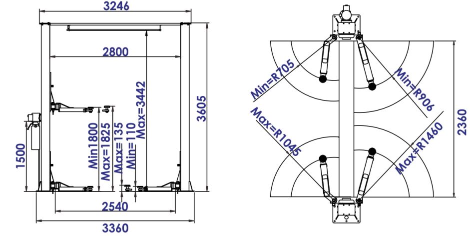 Двухстоечный электрогидравлический подъемник с системой двухсторонней разблокировки