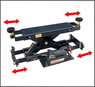 | Регулируемая ширина подходит почти для всех четырехстоечных и ножничных подъемников. | Вставные резиновые прокладки с удлинителями 63,5 мм. | Эргономичное защитное ограждение помогает защитить масляный шланг, а также легко перемещать домкрат. |