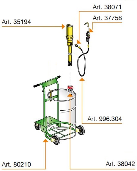 Идеальная комбинация для подачи (заправки) масла в любых рабочих условиях. Очень удобная тележка оснащена приспособлением для закрепления бочки (180-220 кг), регулируемой боковой опорой для закрепления дополнительных приспособлений, колесом с тормозом.