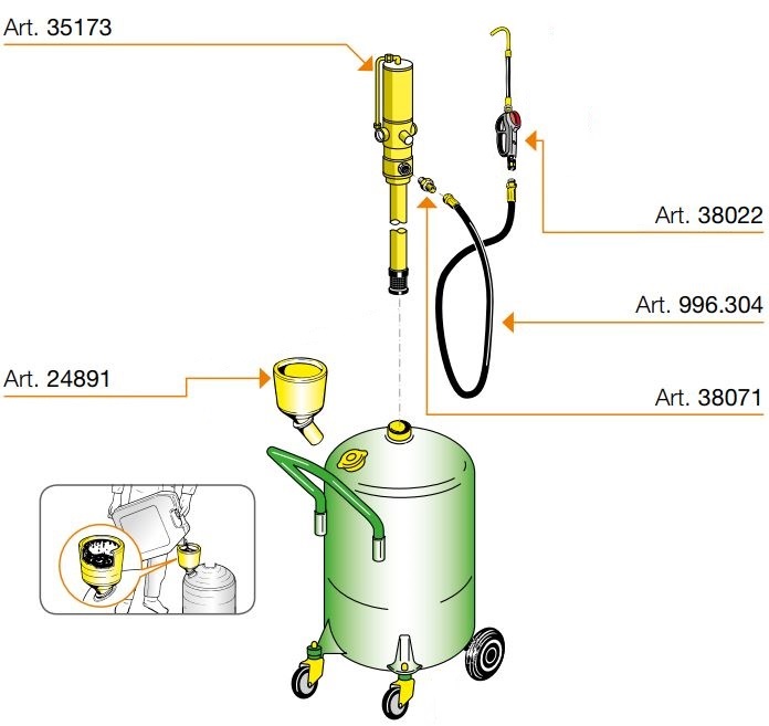 Идеальное сочетание для подачи (заправки) масла в любых рабочих условиях. Бак оснащен двумя закрепленными колесами и двумя поворотными колесами, благодаря чему установка очень удобна в управлении. Воронка с защитой от оттока со специальными краями, позволяющими избежать выливания жидкости на этапе заполнения бака.