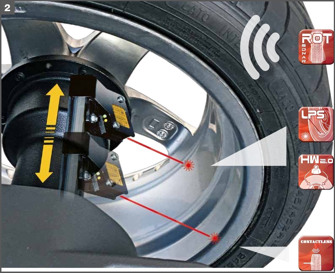 3. БЕСКОНТАКТНАЯ СИСТЕМА ИЗМЕРЕНИЯ РАЗМЕРОВ Высокоточные лазерные датчики автоматически измеряют все размеры колеса через несколько секунд во время цикла вращения. |