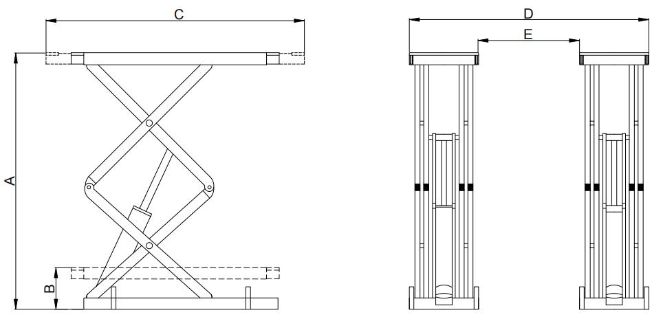 | Расширенные платформы по обе стороны (максимум 400 мм дополнительной длины) | Механический автоматический предохранитель и пневматический предохранитель | Автоматическое защитное устройство остановки на 300 мм от земли при опускании |
