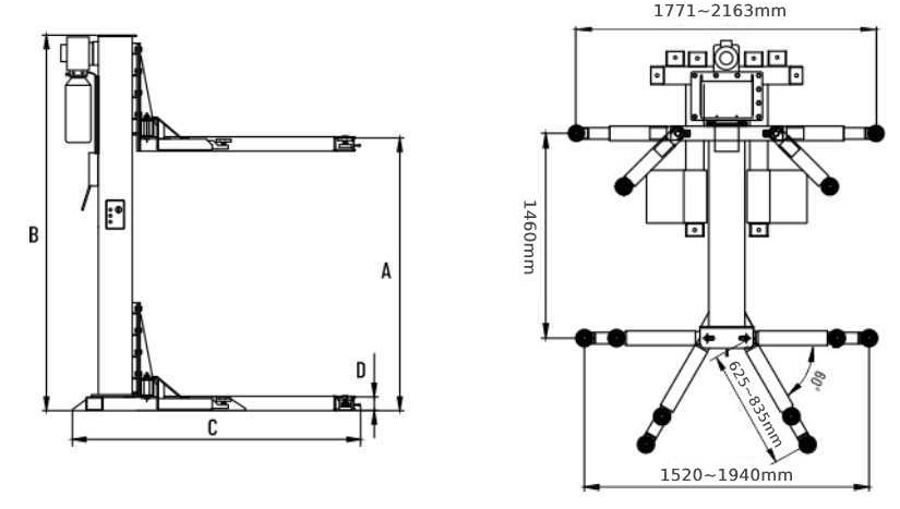 | макс. высота подъема (без адаптера) | A | 1803 - 1852 мм |