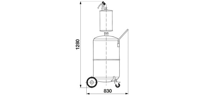 Стандартная пневматическая установка для откачки отработанного масла из автомобиля. Откачка отработанного масла производится путем отсасывания с помощью щупов, прилагаемых в стандартной комплектации. После создания вакуума в установке она работает самостоятельно, нет необходимости в постоянном подключении к сети сжатого воздуха. Прозрачная передкамера позволяет контролировать количество откачанного масла.
