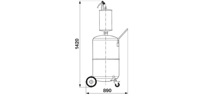 Стандартная пневматическая установка для откачки отработанного масла из автомобиля. Откачка отработанного масла производится путем отсасывания с помощью щупов, прилагаемых в стандартной комплектации. После создания вакуума в установке она работает самостоятельно, нет необходимости в постоянном подключении к сети сжатого воздуха. Прозрачная передкамера позволяет контролировать количество откачанного масла.