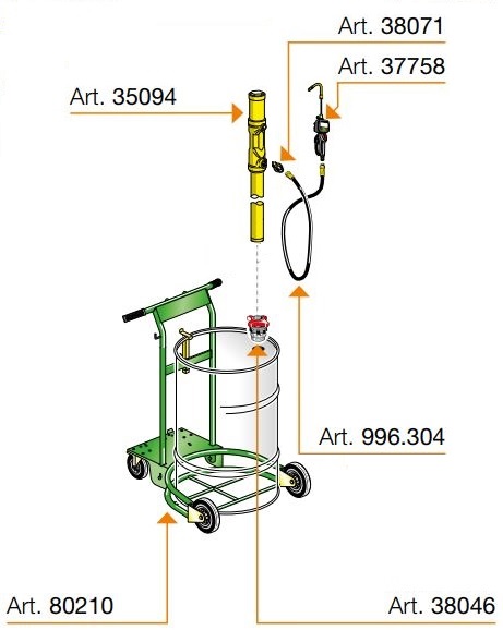 Идеальная комбинация для подачи (заправки) масла в любых рабочих условиях. Очень удобная тележка оснащена приспособлением для закрепления бочки (180-220 кг), регулируемой боковой опорой для закрепления дополнительных приспособлений, колесом с тормозом.