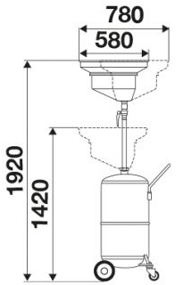 Стандартная установка для слива отработанного масла с автомобиля, вывешенного на подъемнике. Слив отработанного масла производится самотеком с использованием маслосборника (воронки) на 15 литров с регулируемой высотой, установленной на центральной опоре.