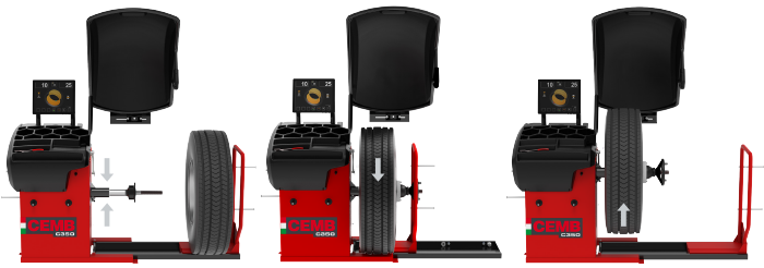 БЕЗПЕЧНЕ ЗАТИСКАННЯ КОЛЕСА ЗАВДЯКИ МОБІЛЬНОМУ ШПИНДЕЛЮ Ніякого ризику для оператора, оскільки підняте колесо вже закріплене на шпинделі, у повній безпеці. |
