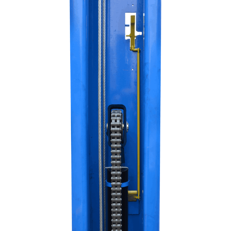 | Одноточкове запобіжне розблокування полегшує операторам розблокування обох колон з однієї колони | Гідравлічний циліндр з ланцюговим приводом | Революційна система подвійного блокування, встановлена в обох колонах | |