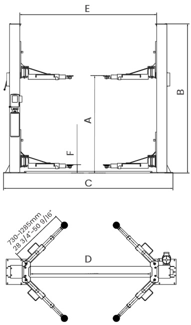 Двостійковий електрогідравлічний підйомник із нижньою синхронізацією