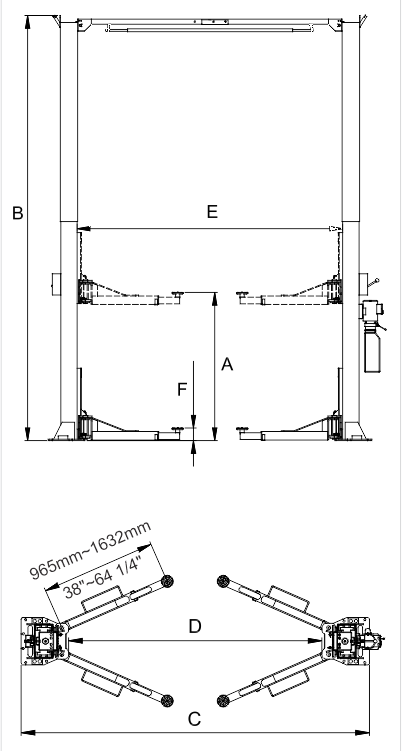 | Одноточкове розблокування дозволяє операторам легше розблокувати обидві колони з однієї колони | Гідравлічні циліндри з прямим приводом | 4 двоступеневі важелі дозволяють завантажувати більше важких транспортних засобів. Лотки для інструментів та захист для ніг входять до стандартної комплектації | |