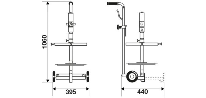 Ідеальна комбінація для подачі (заправки) консистентного мастила в будь-яких робочих умовах. Візок невеликого розміру оснащений 2 закріпленими колесами, завдяки чому дуже зручний в управлінні. Візок оснащен опорою для насоса та призначений для ємностей середнього розміру.