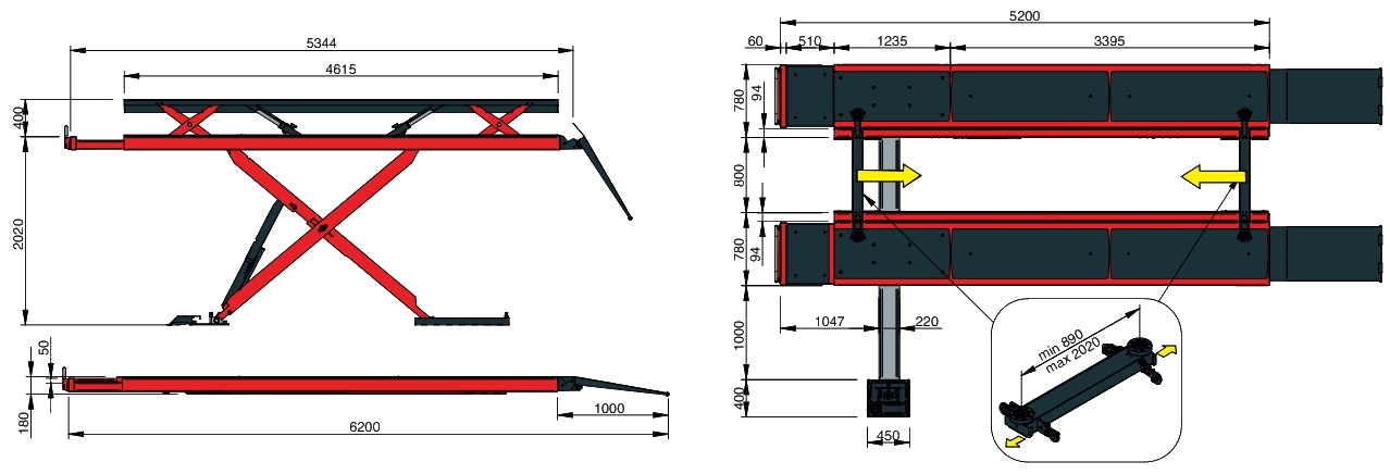 5. КОЛІСНА БАЗА АВТОМОБІЛІВ Передня вісь транспортного засобу розташована у фіксованій точці підйомника (де є поворотні кола) незалежно від колісної бази автомобіля та без будь-якого подальшого регулювання.
