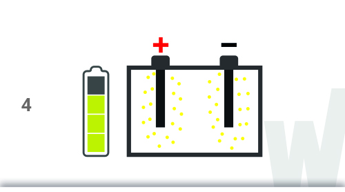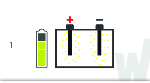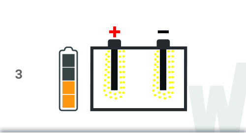 Під час розрядки свинцеві пластини (електроди) реагують з кислим розчином електроліту, у результаті утворюються кристали сульфату свинцю.