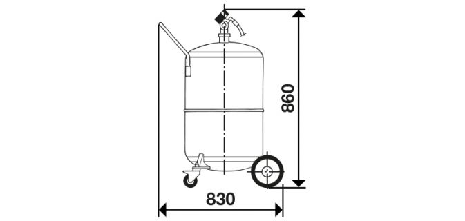 Стандартна пневматична установка для відкачки відпрацьованої оливи з автомобіля. Відкачка відпрацьованої оливи проводиться шляхом відсмоктування за допомогою щупів, що додаються в стандартній комплектації. Після створення вакууму в установці вона працюють самостійно, немає необхідності в постійному підключенні до мережі стисненого повітря.