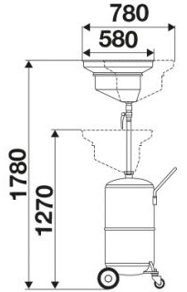 Стандартна установка для зливу відпрацьованої оливи з автомобіля, вивішеного на підйомнику. Злив відпрацьованої оливи проводиться самопливом з використанням маслозбірника (воронки) на 15 літрів з регульованою висотою, встановленою на центральній опорі.