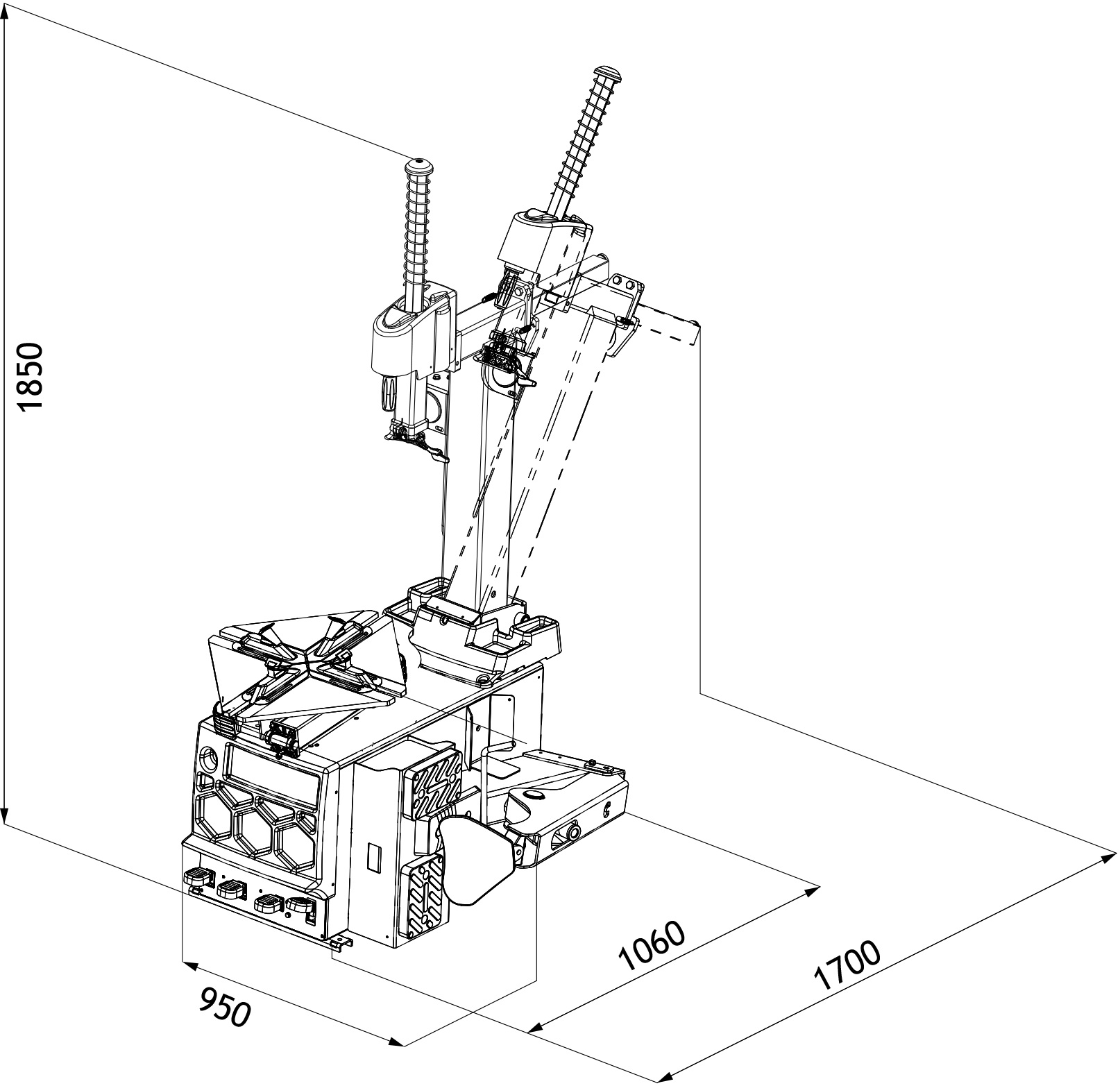 | Автоматичний шиномонтажний пристрій із пневматично відхиляємою назад колоною, що забезпечує максимальну жорсткість для запобігання пошкодження обода. | ![]() |