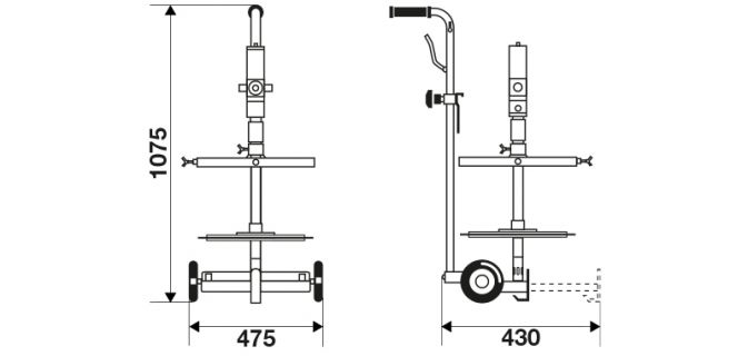Ідеальна комбінація для подачі (заправки) консистентного мастила в будь-яких робочих умовах. Візок невеликого розміру оснащений 2 закріпленими колесами, завдяки чому дуже зручний в управлінні. Візок оснащен опорою для насоса та призначений для ємностей середнього розміру.