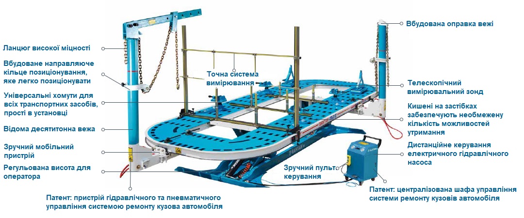 | Універсальні хомути можуть міцно закріпити автомобілі | Точна система вимірювання | Потужний електричний гідравлічний насос, зручний і стабільний | Підйомний пристрій |