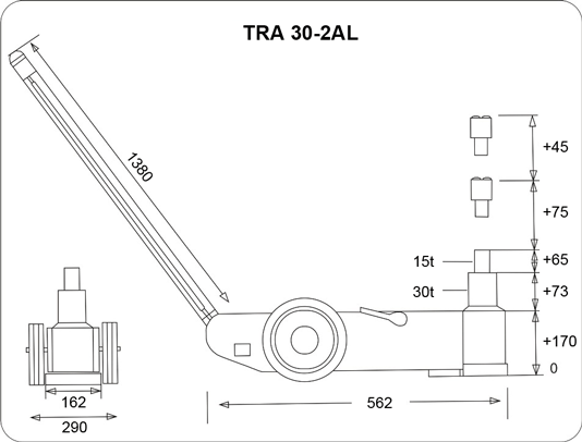 Домкрат пневмогідравлічний підкатий 30/15 т