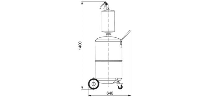 Стандартна пневматична установка для відкачки відпрацьованої оливи з автомобіля. Відкачка відпрацьованої оливи проводиться шляхом відсмоктування за допомогою щупів, що додаються в стандартній комплектації. Після створення вакууму в установці вона працюють самостійно, немає необхідності в постійному підключенні до мережі стисненого повітря. Прозора передкамера дозволяє контролювати кількість відкачаної оливи.