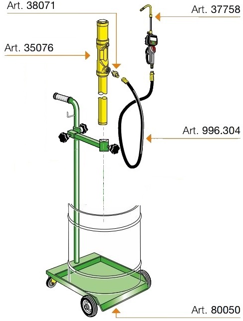 Ідеальна комбінація для подачі (заправки) оливи у будь-яких робочих умовах. Візок оснащений двома закріпленими колесами та двома поворотними колесами, завдяки чому установка дуже зручна в керуванні. Візок оснащений опорою для насоса та призначений для витримування ваги різних ємностей (30-60 кг).