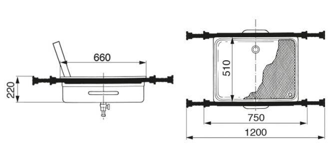 Призначена для збору відпрацьованої моторної оливи під впливом кавітації коробки передач та диференціала, якщо автомобіль встановлений над ямою. Оснащена водобійними гратами, що запобігають зворотньому потоку та також використовується як опорна поверхня для стікання масляних фільтрів.