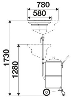 Стандартна установка для зливу відпрацьованої оливи автомобіля, вивішеного на підйомнику. Злив відпрацьованої оливи проводиться самопливом з використанням маслозбірника (воронки) на 15 літрів з регульованою висотою, встановленою на бічній опорі.