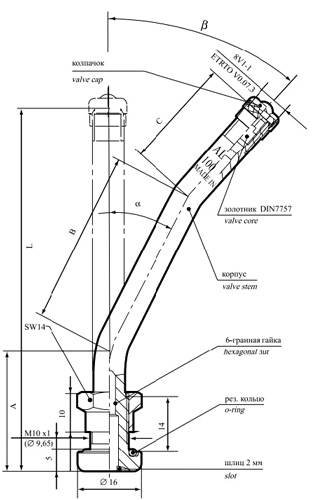 Посадковий діаметр: 9,7 мм; А: 30 мм; B: 45 мм; C: 25 мм; a°27; b°42; максимальний тиск: <14 бар; зусилля на зажимній гайці, Н·м: 12-15;
