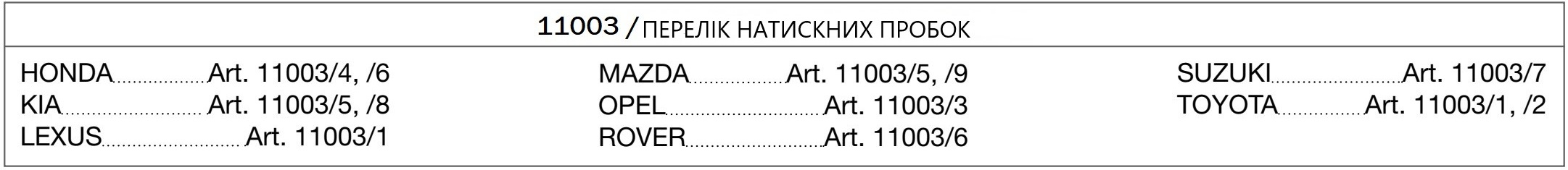 11003/5 | Прижимная пробка-адаптер, диаметр 65,7 мм | Нет в наличии 979 грн. | ||