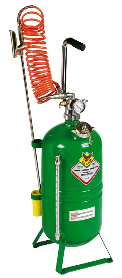 Устройство для распыления нетоксичных моющих жидкостей низкой плотности, например, смазочного масла и подобных материалов. Оно эффективно при мойке автомобилей, графитинировании, смазывании, нанесении масел и т.д. После того, как будет заполнено на 3/4 емкости и помещено под давлением 6-8 бар, оно будет работать самостоятельно, нет необходимости в их постоянном подключении к сети сжатого воздуха.