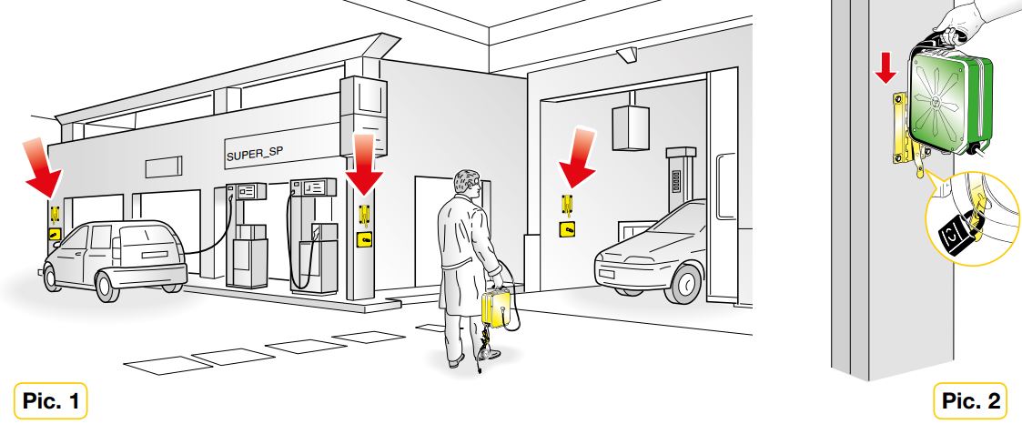 Рис. 1 - Раздаточная катушка для накачивания оснащена настенной опорой с автоматическим байонетным соединением (арт. 89001), что позволяет осуществить ее установку или перемещение легко и быстро. Легкость выполнения этого действия позволяет, в том числе в целях безопасности, убрать раздаточную катушку в закрытое помещение в конце рабочего дня. Кроме того, размещение настенных опор в каждой точке эксплуатации, как в помещении, так и вне помещения, способствует быстрому перемещению и установке одной и той же катушки в месте эксплуатации, выбранном оператором