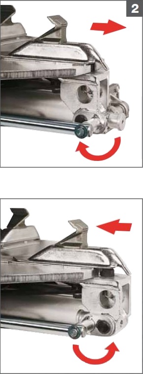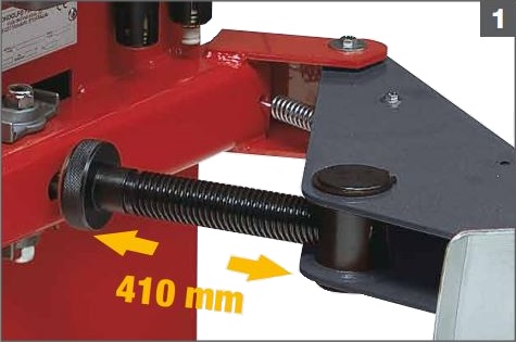 1. УЗЕЛ ОТЖИМА БОРТОВ Ручка отжима борта позволяет открываться до 410 мм и оснащена регулятором хода, чтобы исключить возможность раздавливания шины. Отжим бортов приводится в действие пневматическим цилиндром двойного действия, полностью изготовленным из нержавеющей стали, развивающий силу 15500 Н на лезвии. |