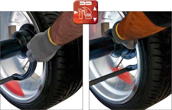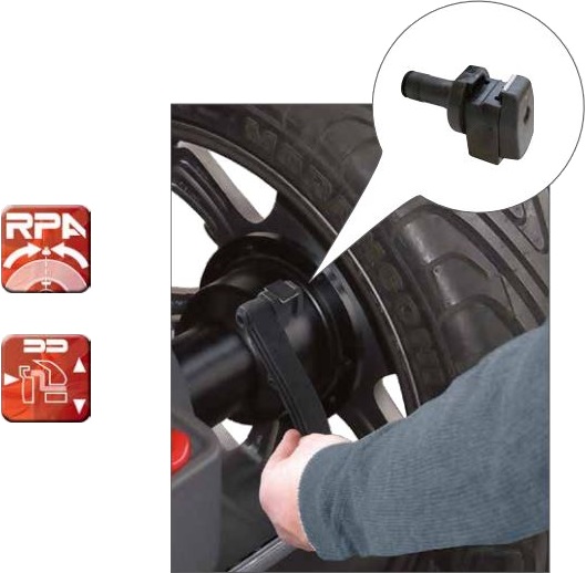 ОПРЕДЕЛЕНИЕ РАЗМЕРА КОЛЕС Цифровой внутренний датчик для измерения расстояния и диаметра до 28" с функцией AUTOSELECT, автоматически активирующей программы балансировки. Датчик также может быть оснащен системой LASER PLANE (опция), которая помогает оператору выбирать внутренние поверхности легкосплавного обода без ошибок и с чрезвычайной видимостью.
