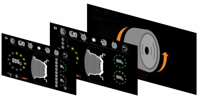 Автоматическое измерение расстояния и диаметра колеса, позволяющее быстрее вводить данные | Повторитель положения для высококлассных колес, только для клеевых противовесов | Автоматическая линейка (датчик) для быстрого измерения ширины колеса |