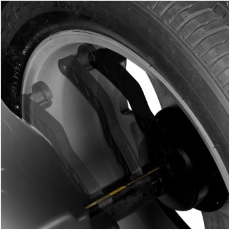 Машина оснащена функцией автоматического позиционирования, которая обнаруживает несбалансированные точки, устраняя ручное вращение шины | Функция электромагнитного тормоза автоматически фиксирует колесо после позиционирования внутреннего или внешнего несбалансированного положения | После позиционирования колеса лазерный указатель (точка) автоматически показывает точное место применения клеевых тяжестей в программах ALU |