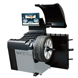 Диагностический балансировочный центр с бесконтактным определением размером колеса, автоматической системой зажима, полной диагностикой колес и решением проблем с боковым уводом.