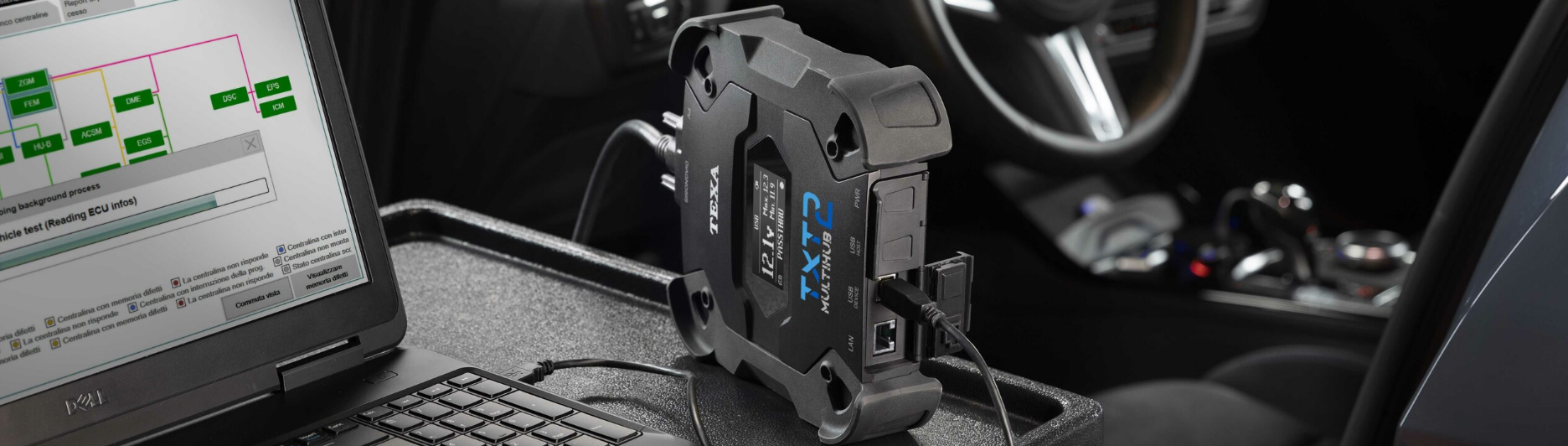 Кроме того, это позволяет постоянно контролировать работу инструмента: он воспроизводит более 40 сообщений, которые предоставляют техникам всю необходимую информацию при диагностических операциях. TXT MULTIHUB 2 показывает на дисплее в режиме реального времени напряжение аккумулятора автомобиля, к которому он подключен. Это необходимо для выполнения определенных диагностических операций, например, регулирования. |