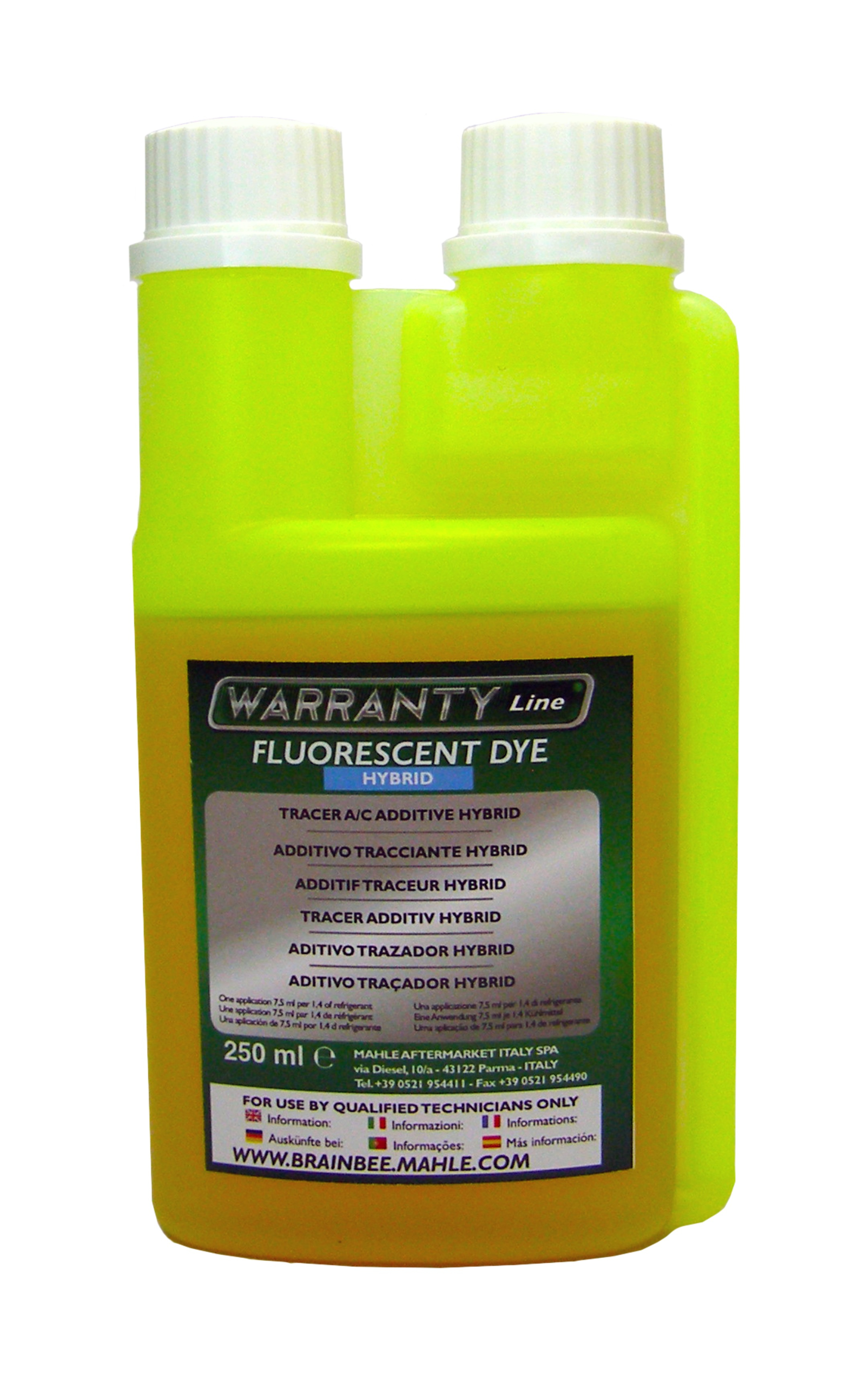 Флуоресцентный краситель - это специальное индикаторное масло, которое становится флуоресцентным под действием УФ-излучения. Он идеально подходит для визуального поиска возможных утечек в цепи кондиционера гибридного автомобиля, использующий фреон R134a.