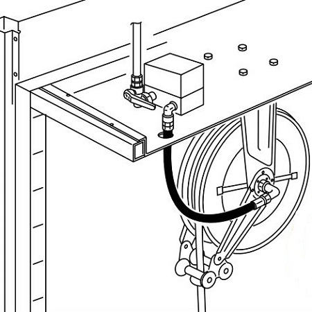 Двухсторонний стенд (сервисная стойка) для четырех раздаточных шланговых катушек с емким резервуаром