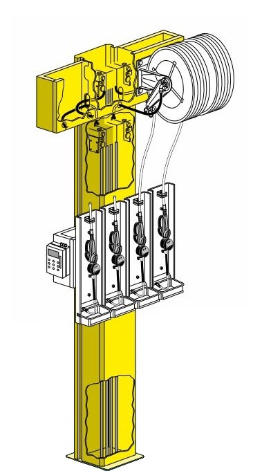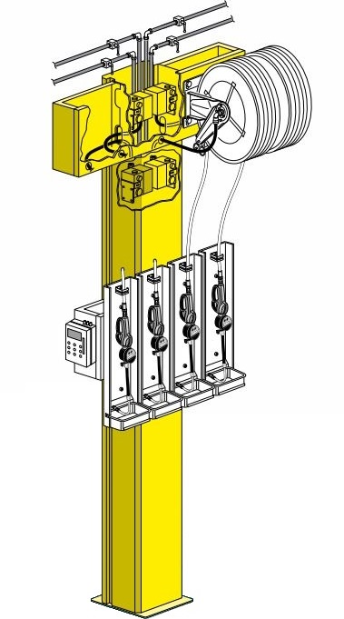 Верхняя часть опоры оснащена отверстиями для установки раздаточных катушек и электроклапанов блокировки жидкости. Впереди можно установить каплесборные бачки. | |