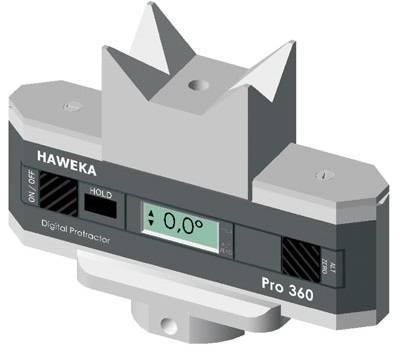 Электронный инклинометр предназначен для измерения углов. Он позволяет определить наклон рычагов подвески или оси приводного вала относительно горизонтали. Измеренные значения могут быть введены в компьютер стенда регулировки установки колес. Таким образом могут быть оптимизированы углы развала, схождения и угол продольного наклона шкворня. Конструкция прибора позволяет измерять углы как вертикальных, так и горизонтальных поверхностей.