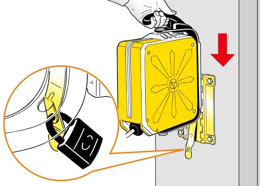 Чтобы избежать снятия или кражи раздаточной катушки, ее можно заблокировать с помощью болта или замка (не входит в комплектацию). | |