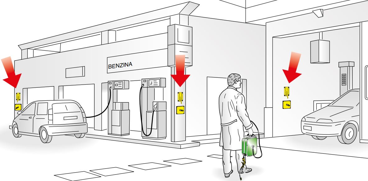 Катушки для шлангов 260 серии оснащены настенным кронштейном с байонетным креплением (артикул 89001). Размещение нескольких кронштейнов в точках обслуживания позволяет легко перемещать шланговые катушки на разные рабочие станции. | |