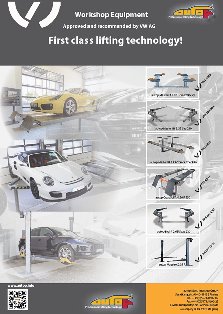 Подъемники компании Autop Maschinenbau GmbH одобрены и рекомендованы Porsche, Audi, Mercedes-Benz, Jaguar, Land Rover, Opel, Renault, Rolls-Royce, Seat, Skoda, Volkswagen, BMW.