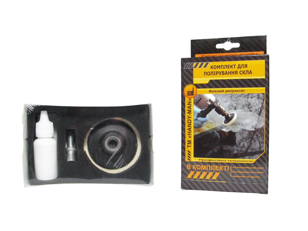 - Комплект позволяет удалить неглубокие царапины, потертости, матовость, кислотные и солевые отложения на стеклах и стеклянных фарах транспортных средств, фасадах, витринах.