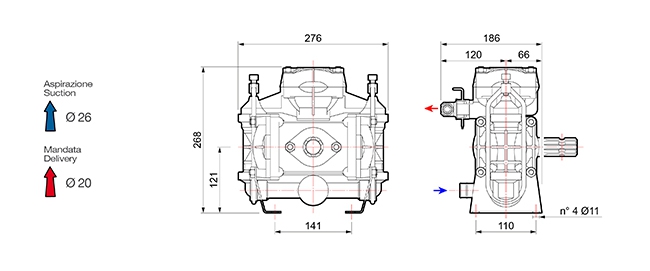 Части в контакте с жидкостью изготовлены из пластика и пластифицированного алюминия, устойчивы к действию химических веществ, используемых в сельском хозяйстве. Конфигурация с 2 мембранами из NBR. По запросу может поставляться мембрана Desmopan® и Viton Торцевые части и коллекторы из пластифицированного алюминия. Серийно устанавливаемый аккумулятор давления. Предохранительный клапан и защита точки отбора мощности, по заказу.