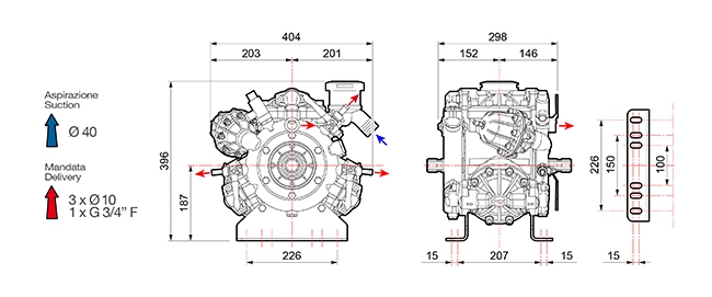 - Прочные опорные ножки для насоса, надежно прикрепленные к картеру в четырех точках.