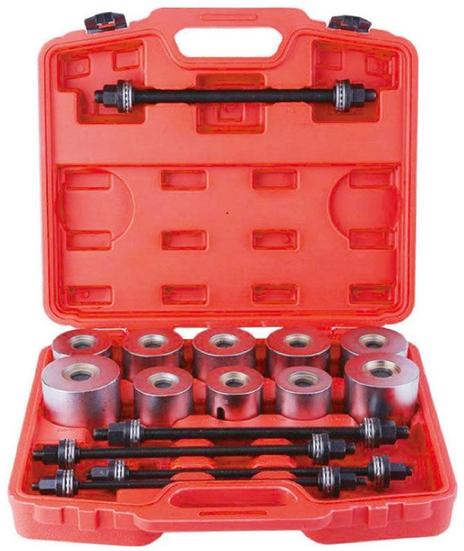 Универсальный набор используется для снятия и установки сайлент-блоков, подшипников и резиновых втулок.